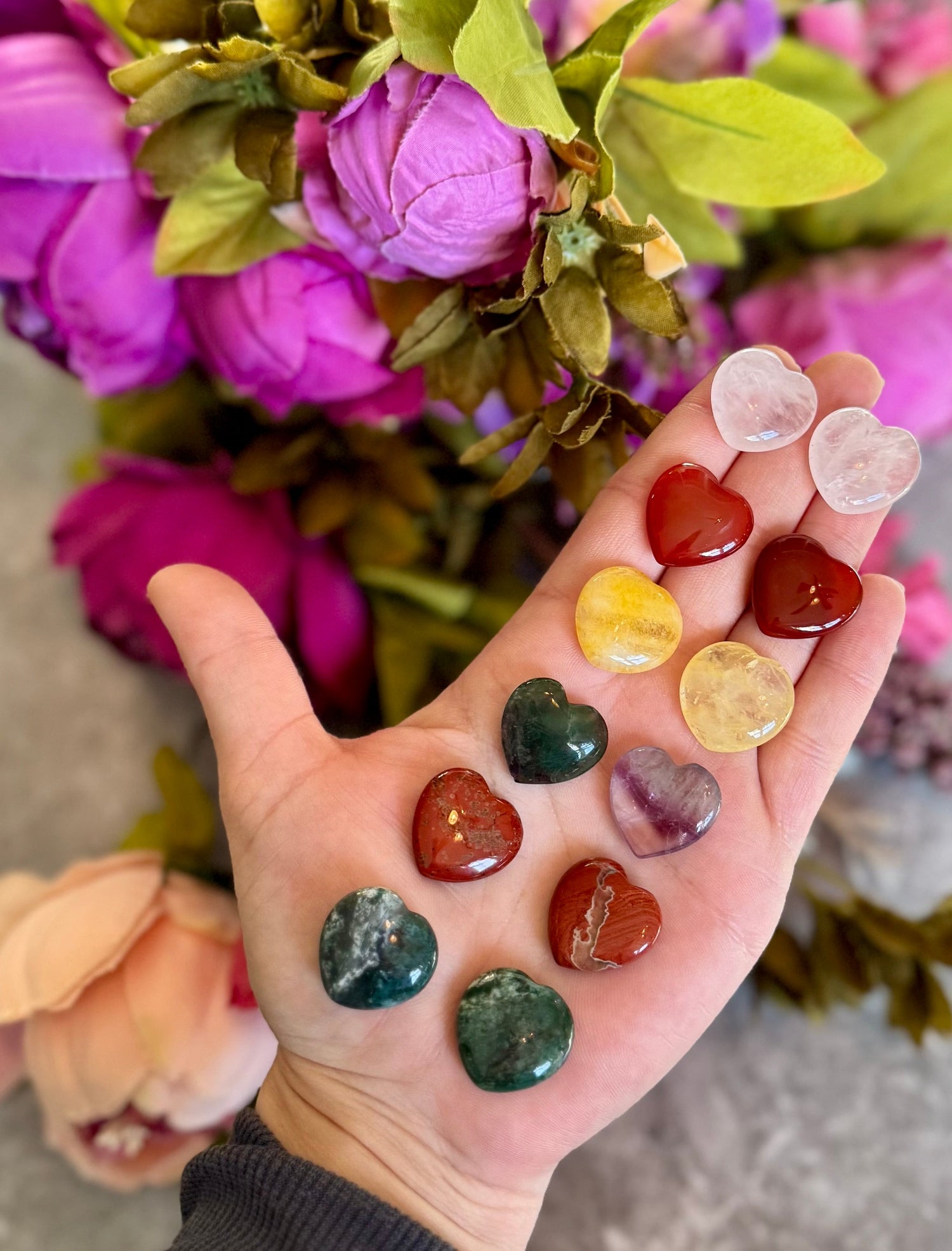 2 cm Crystal Hearts for Valentines Day, You Choose Red Jasper, Fluorite, Carnelian, Rose Quartz, Moss Agate, Yellow