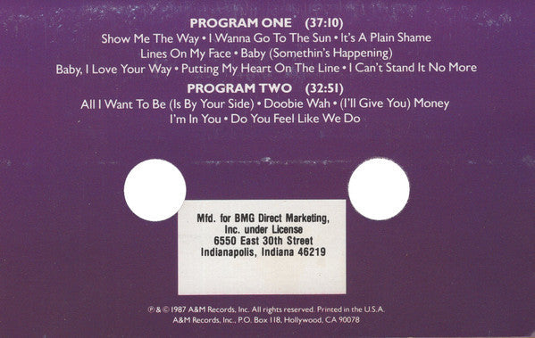Tracklist: A1. Show Me The Way, A2. I Wanna Go To The Sun, A3. It's A Plain Shame, A4. Lines On My Face, A5. Baby (Somethin's Happening), A6. Baby, I Love Your Way, A7. Putting My Heart On The Line, A8. I Can't Stand It No More, B1. All I Want To Be (Is By Your Side), B2. Doobie Wah, B3. (I'll Give You) Money, B4. I'm In You, B5. Do You Feel Like We Do