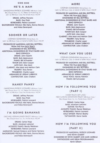 Tracklist: A1. He's A Man, A2. Sooner Or Later, A3. Hanky Panky, A4. I'm Going Bananas, A5. Cry Baby, A6. Something To Remember, B1. Back In Business, B2. More, B3. What Can You Lose, B4. Now I'm Following You (Part I), B5. Now I'm Following You (Part II), B6. Vogue