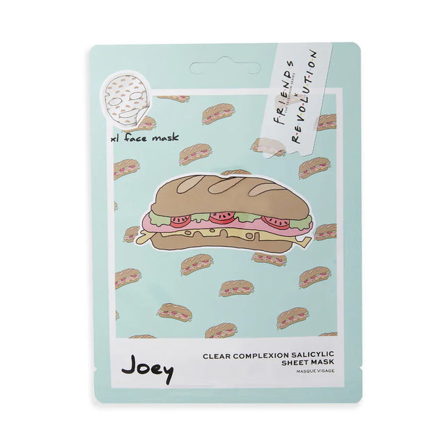 The one when Joey had a make-over... Relax and unwind with the Revolution X Friends Joey Salicylic Sheet Mask. Binge-watch your favorite episode of Friends with this Salicylic Sheet Mask. Infused with Salicylic ingredients to help fight blemishes and promote a clear complexion. The pack includes one sheet mask. Cruelty-free and vegan. Unwind with the REVOLUTION Clear Complexion Salicylic Sheet Mask, made to help clear blemishes and improve your skin. Infused with Salicylic acid, this mask leaves your complexion fresh and smooth after each use.