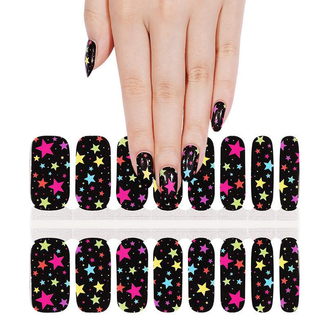 Real Nail Polish Stickers! Our real nail polish stickers come in a 16 nail set. Apply the real nail polish stickers and file the excess. Each set lasts about 10-14 days.