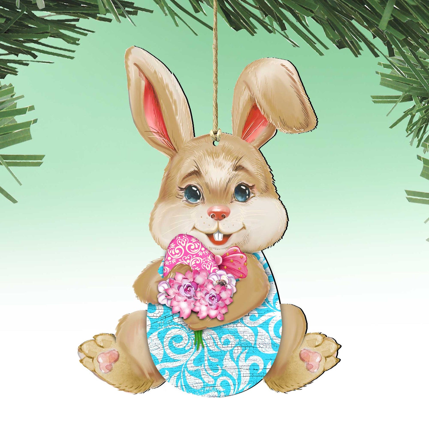 Easter Baby Bunny Wooden Ornaments Set of 3 by G. DeBrekht - Easter Spring Decor - 815432S3