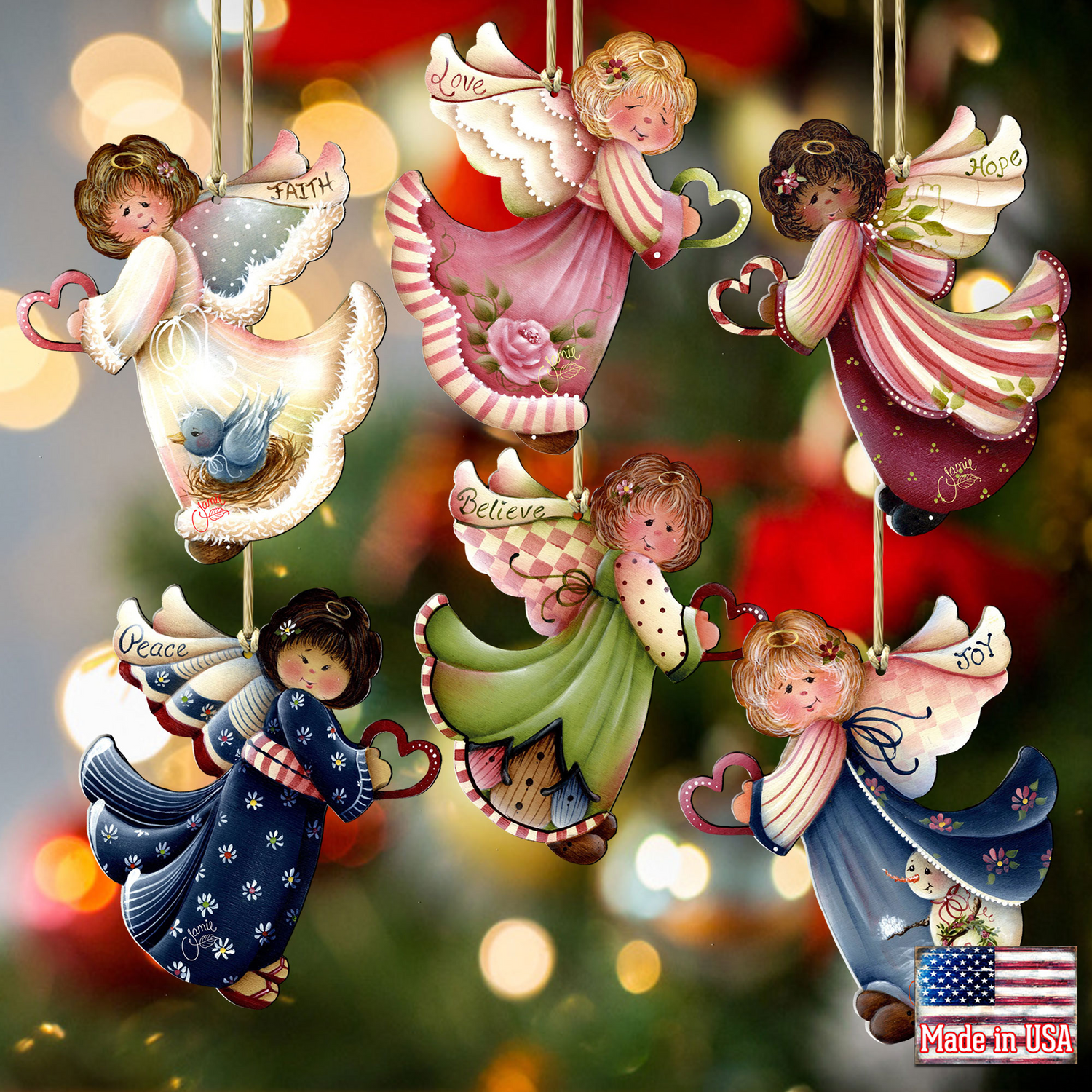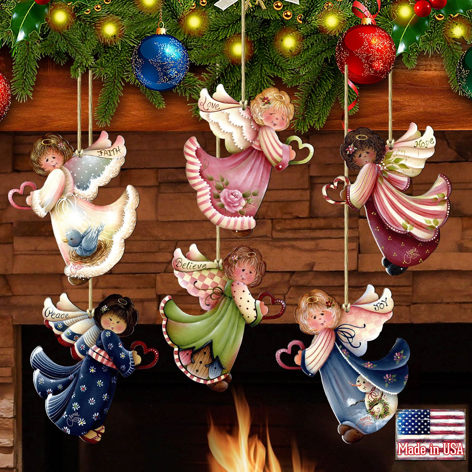 Loving Angels Wooden Ornaments Set of 6 by Jamie Mills-Price - Nativity Holiday Decor - 8457517-S6-MP