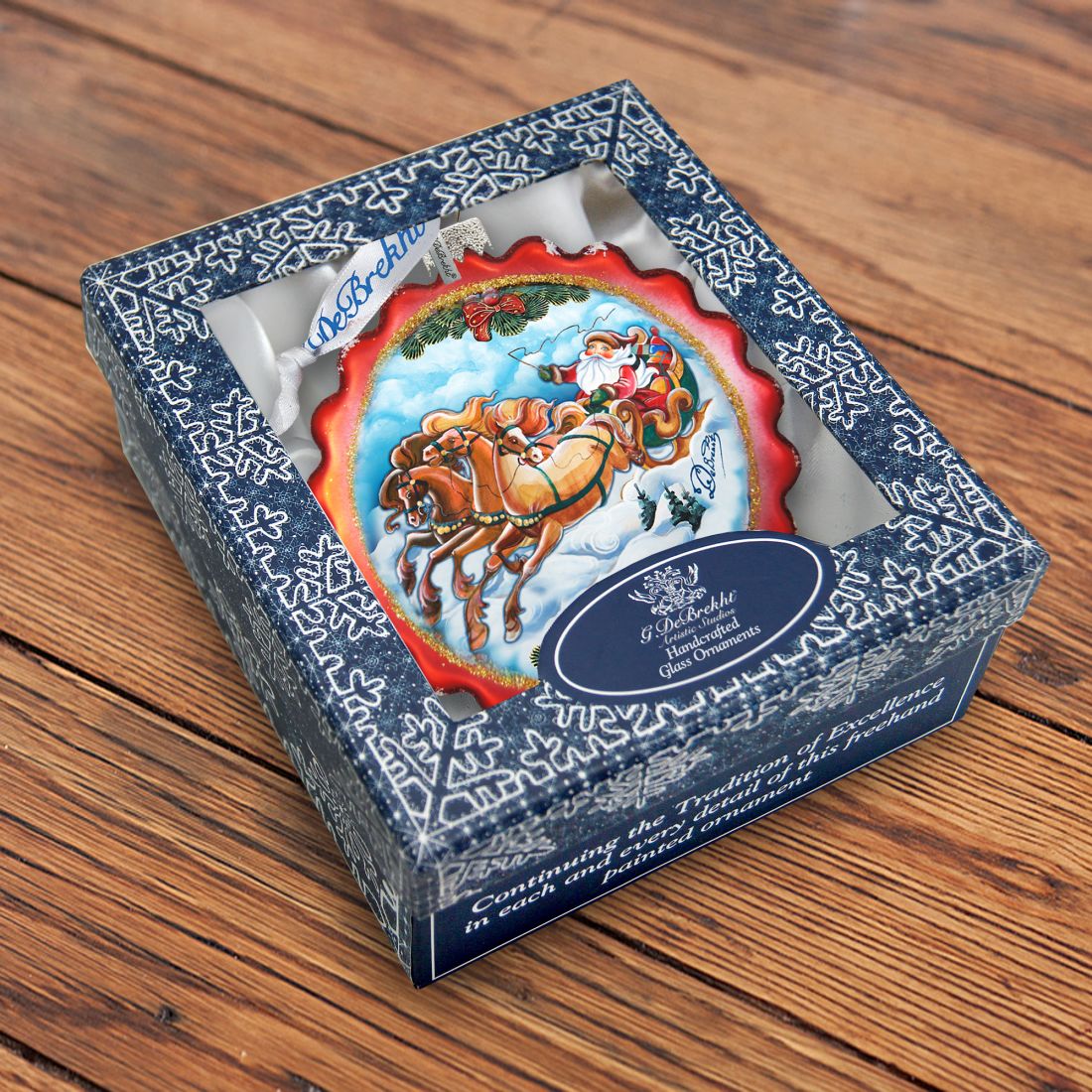 Sleigh Ride Flower Glass Ornament by G. DeBrekht - Christmas Santa Snowman Decor - 759-003