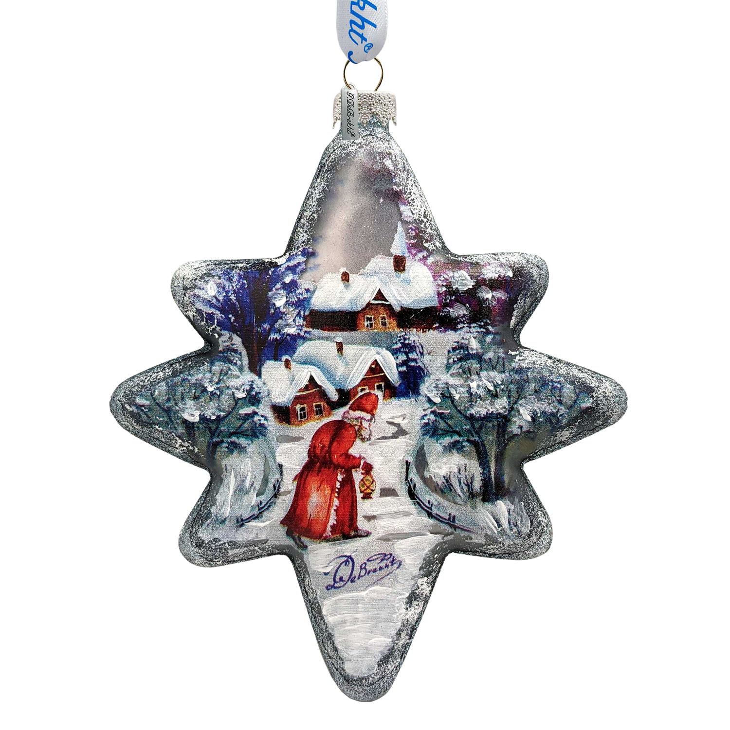 Snowman Play North Star Glass Ornament by G. DeBrekht - Christmas Santa Snowman Decor - 755-099