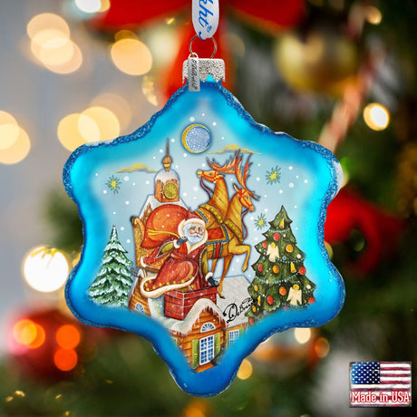 Ride to North Pole Santa Glass Ornament by G. D...