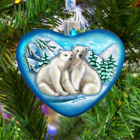 Polar Bear Love Heart Glass Ornament by G. DeBr...