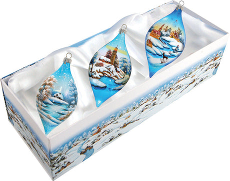 Winter Play Glass Ornament Set of 3 by G. DeBre...