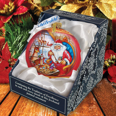 Santa Workshop Ball Glass Ornament by G. DeBrek...