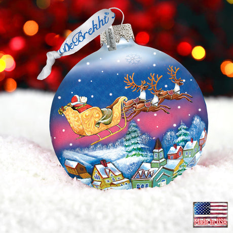 Santa on Sleigh Ball Glass Ornament by G. DeBre...