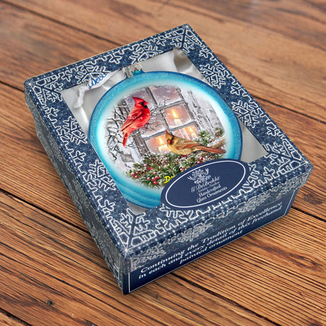 Christmas Cardinals Glass Ornament by D. Gelsin...