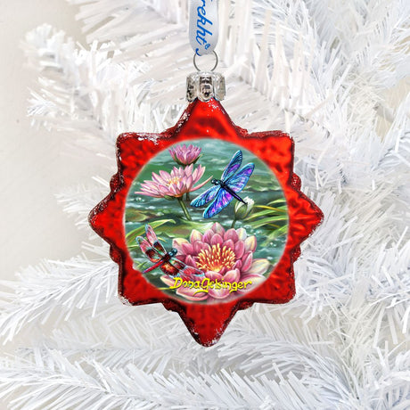 Dragonflies and Water Lilies Mercury Glass Orna...