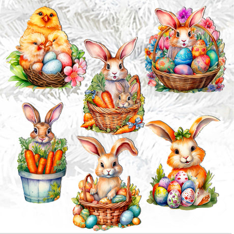 Eggs and Bunnies Decorative Wooden Clip-on Orna...
