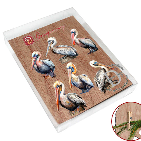 Pelicans Decorative Wooden Clip-on Ornaments of...