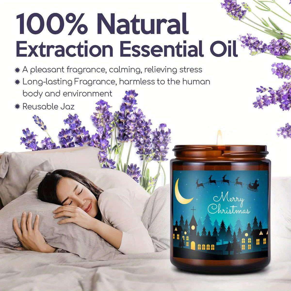 1pc Glass Scented Candle, Lavender Fragrance, Merry Christmas Theme, Essential Oils, Smoke-Free, Ideal for Holiday Centerpieces & Home Decoration, Gift for Family & Friends