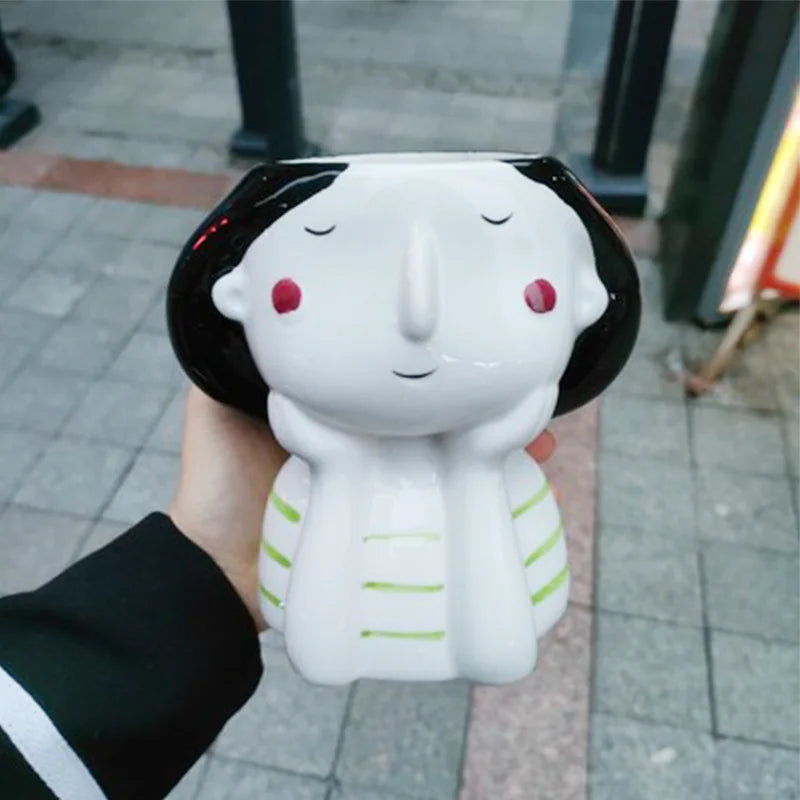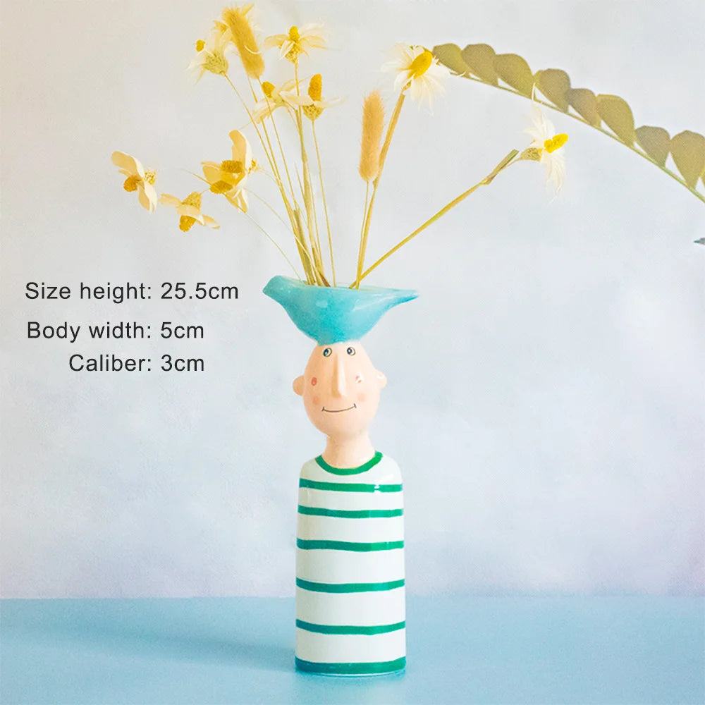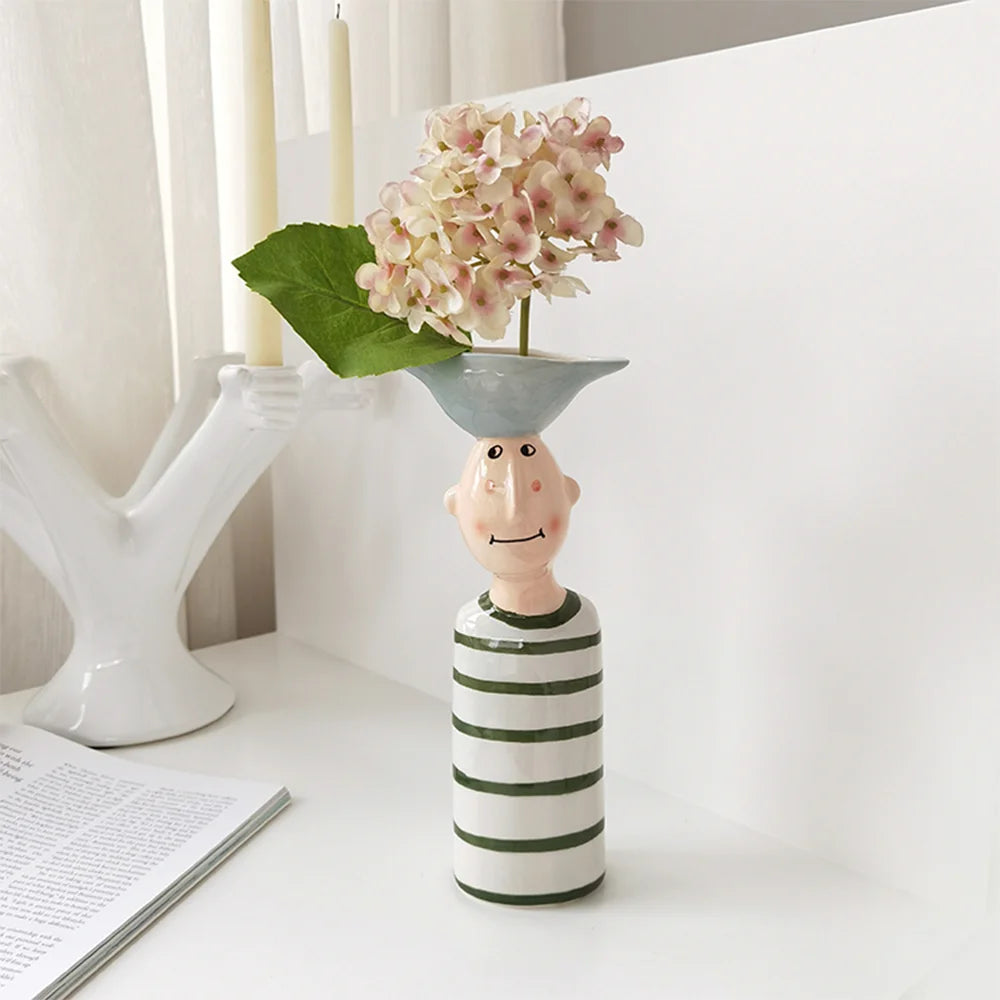 Statue Head Portrait Sculpture Ornament Bonsai Handmade Art Pot Bum Ceramic Vase Plaster Living Room Home Decor Dried Flowers