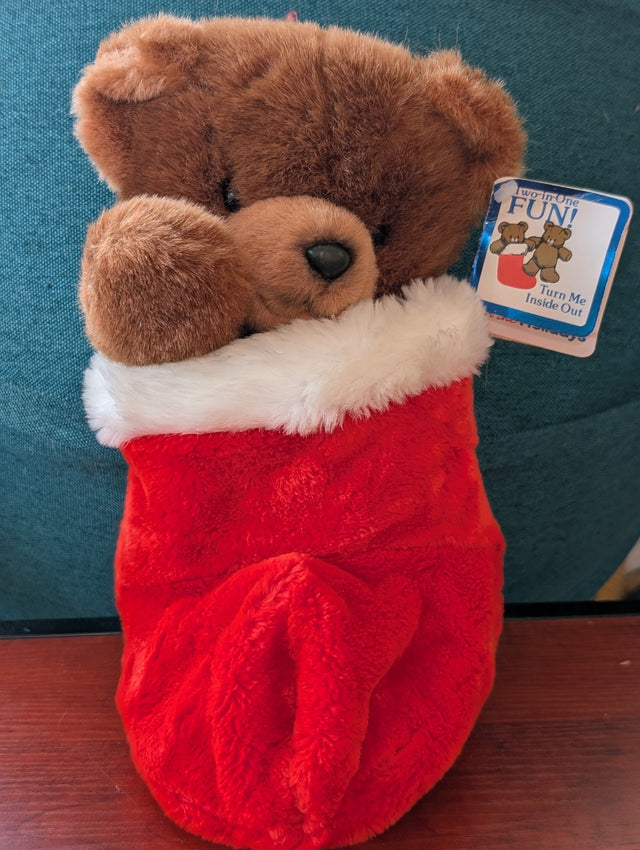 Vintage Applause Teddy Bear Christmas stocking plush Stuffed Animal 1986 Reversible