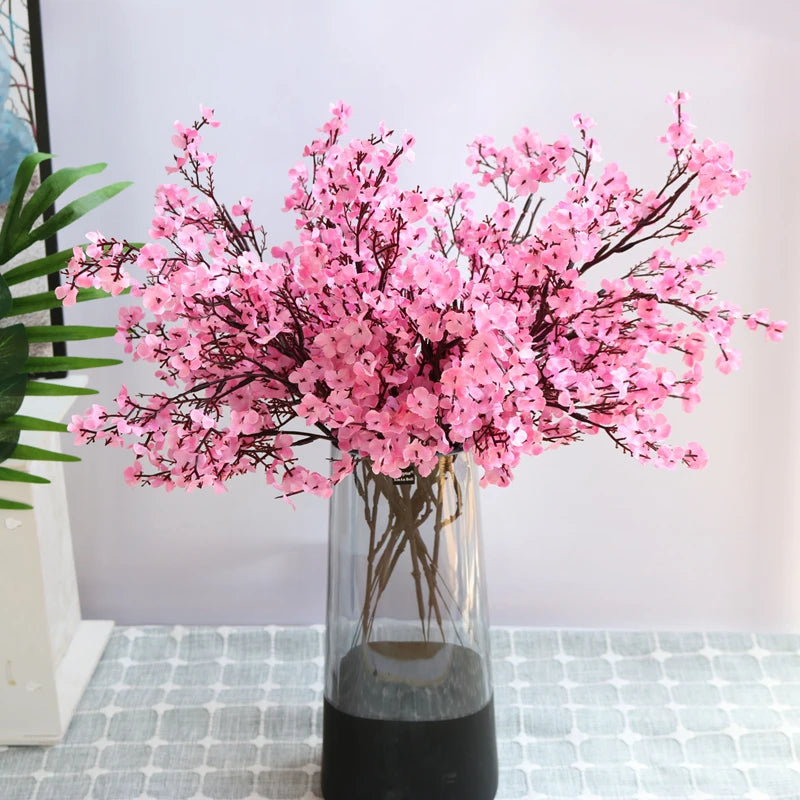 White Artificial Flowers Cherry Blossoms Gypsophila Fake Plants DIY Wedding Bouquet Vases for Home Decor Faux Christmas Branch