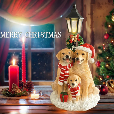 Christmas Dog Statues For Decoration Resin Scul...