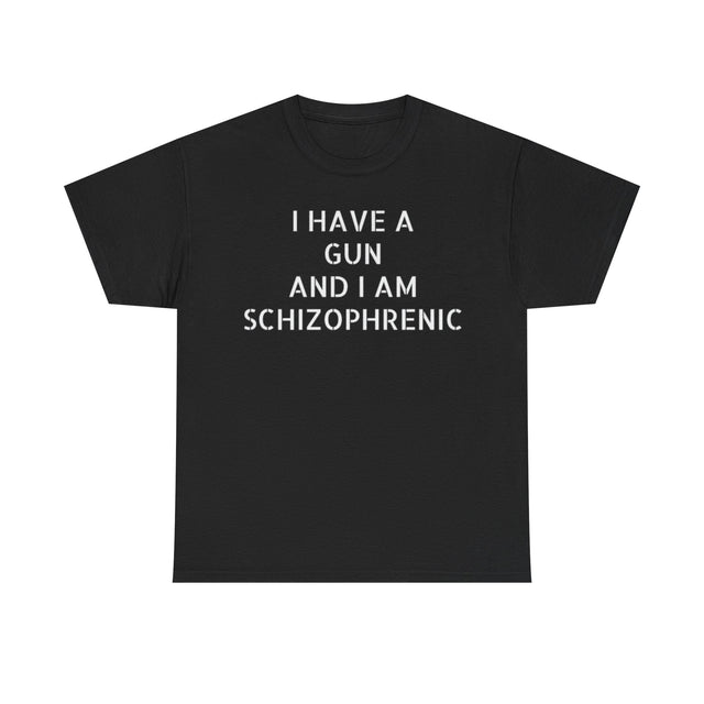 I have a gun and I am schizophrenic Funny Shirt - Black / S is backordered and will ship as soon as it is back in stock.