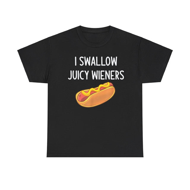 I Swallow Juicy Wieners Funny Shirt - Black / S is backordered and will ship as soon as it is back in stock.