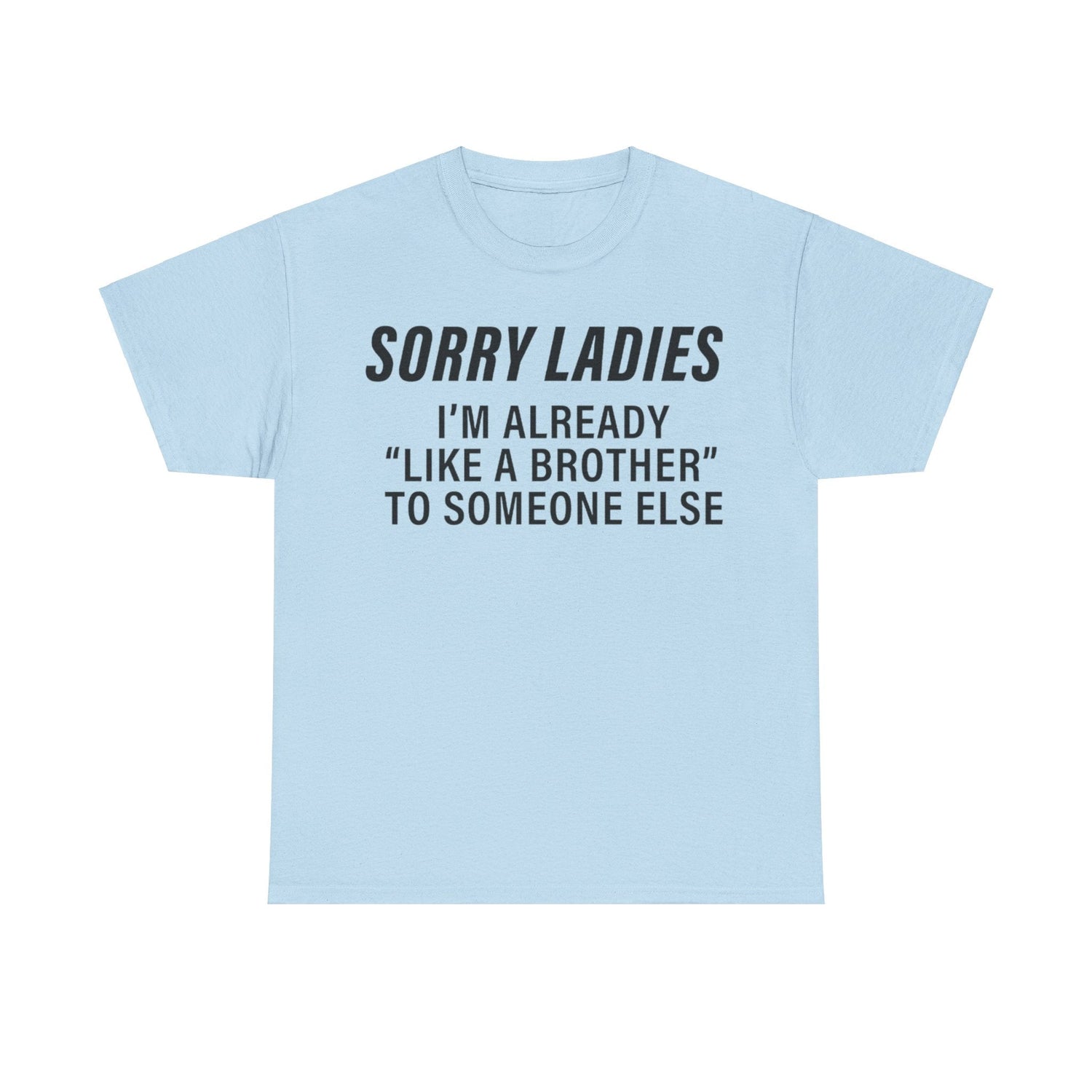 Sorry Ladies I’m Already Like a Brother to Someone Else Funny T-Shirt – Hilarious Meme Tee - Light Blue / S is backordered and will ship as soon as it is back in stock.