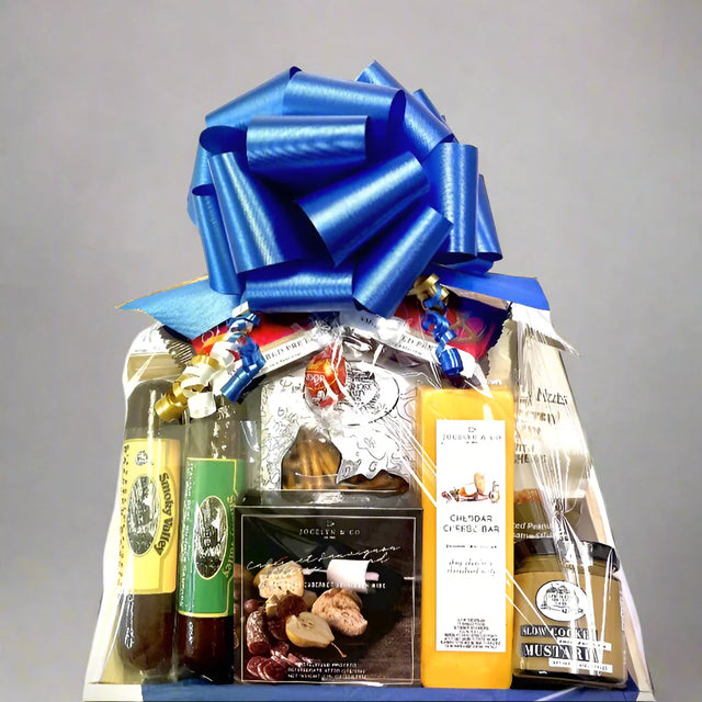 Indulge in the perfect balance of sweet and savory with this luxury gift basket. Featuring the finest sweet sausage and cheese selections, alongside decadent chocolate delicacies, every bite is a sensory delight. Satisfy your cravings with the succulent smoky flavor of the perfectly seasoned sausage, slow-smoked to perfection with top quality ingredients. Discover the exquisite range of cheese flavors from mild to sharp, each with a rich, creamy texture that will leave you wanting more. But wait, there's more! Treat yourself to the crunch and contrast of chocolate-covered pretzels, and indulge in the decadent explosion of flavor in every bite of the chocolate truffles. Wrapped in a beautiful basket, this selection is ideal for sharing with loved ones at gatherings or as a thoughtful gift for any occasion. For an even more delightful experience, add some crackers, fruits, or a bottle of wine.