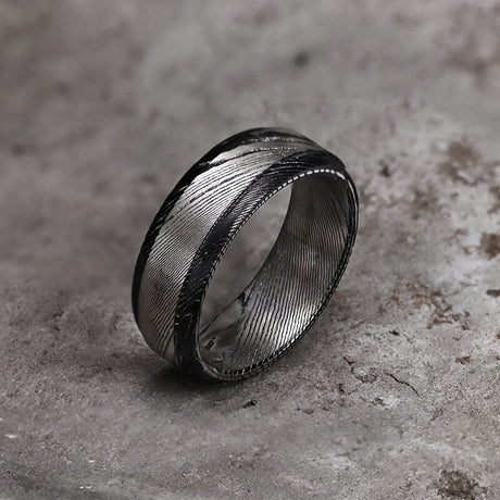 Black Step Edge Pattern Damascus Steel Ring