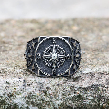 Compass Design Stainless Steel Marine Ring
