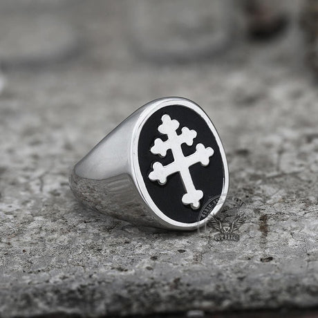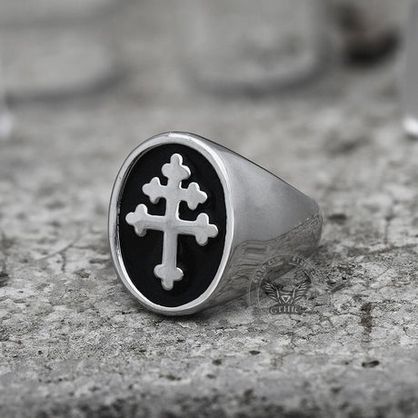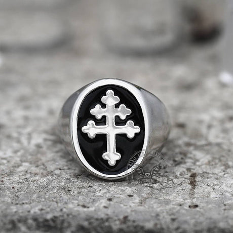 Cross of Lorraine Stainless Steel Masonic Ring
