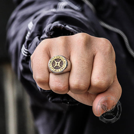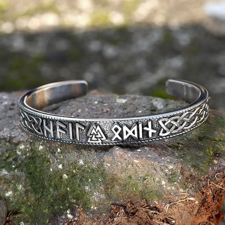 Stamped Futhark Runes Stainless Steel Viking Cu...