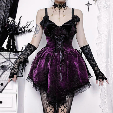 Gothic Lace-up Spider Web A-line Dress