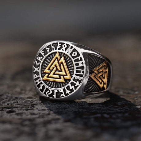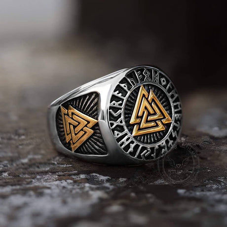 Runes Valknut Triangle Stainless Steel Viking Ring