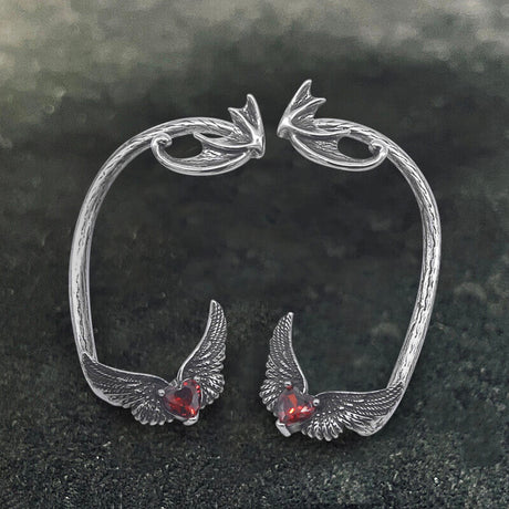 Heart Shape Zircon Devil Wings Stainless Steel ...