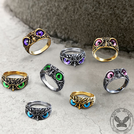 Owl Gem Eye Stainless Steel Ring