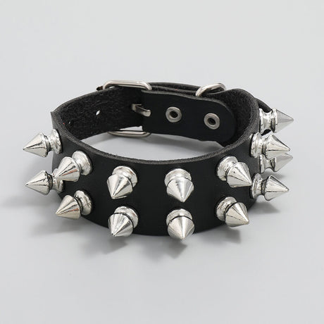 Punk Rock 2 Row Spiked Leather Bracelet