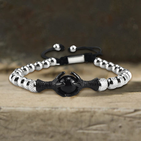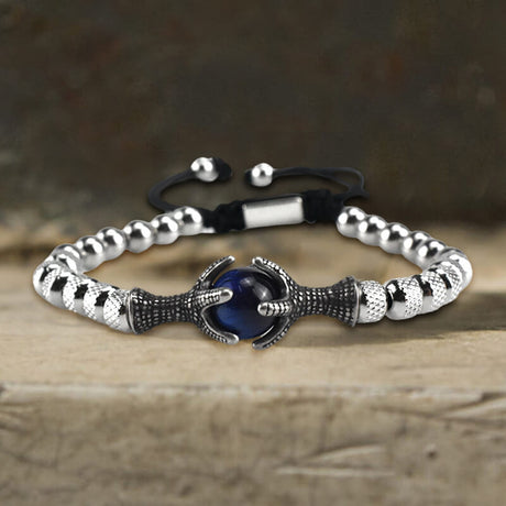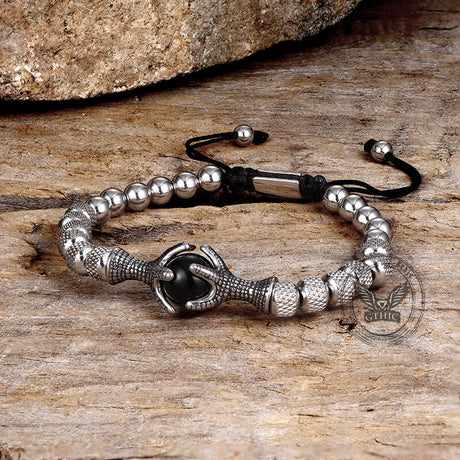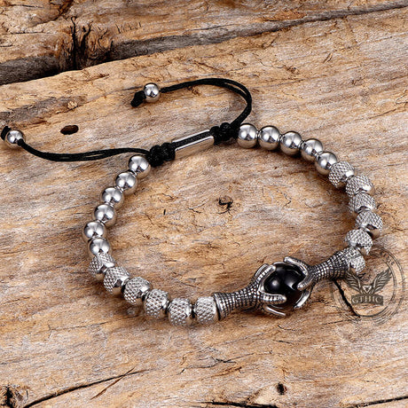 Vintage Eagle Claw Beaded Stainless Steel Bracelet