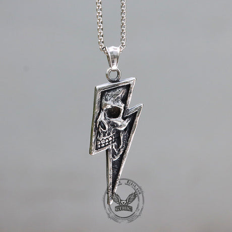Vintage Lightning Bolt Skull Stainless Steel Pe...