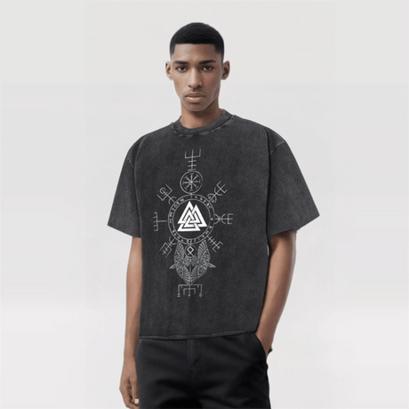 Vintage Washed Viking Totems Ravens T-shirt