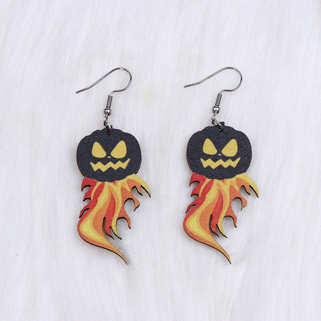Flame Pumpkin Wood Halloween Earrings