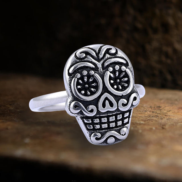Flower Sugar Skull Stainless Steel Ring
