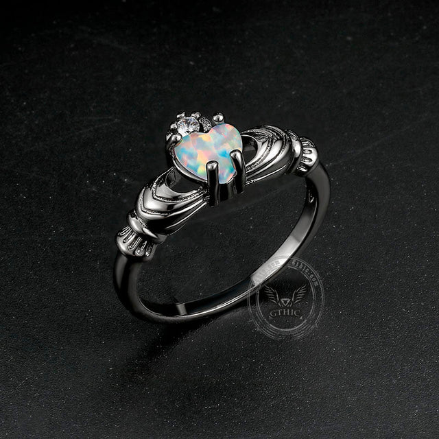 Gothic Love Heart Opal Brass Claddagh Ring
