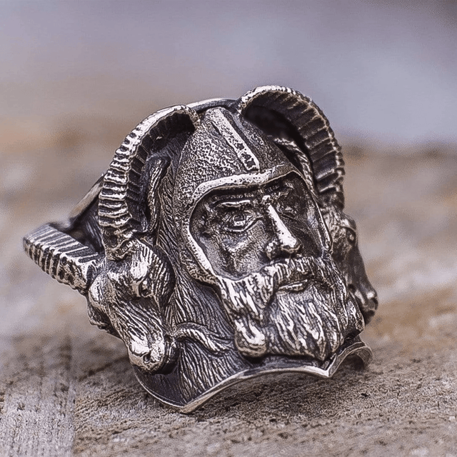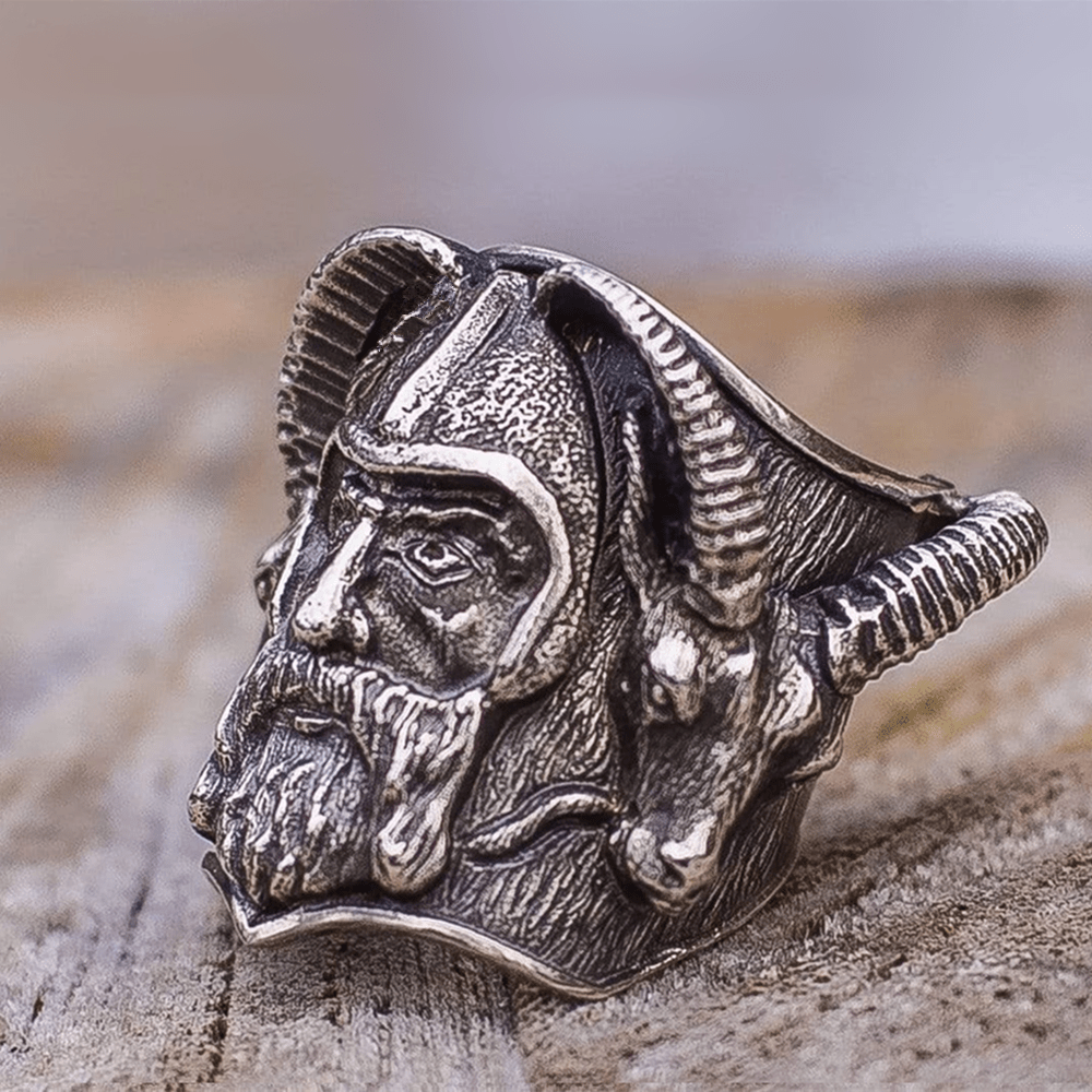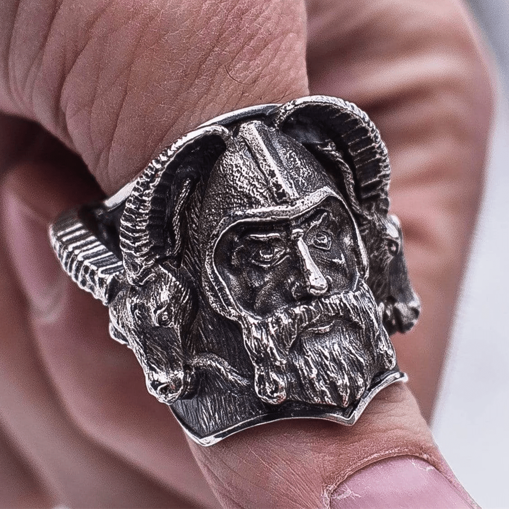Nordic Goat Warrior Stainless Steel Skull Viking Ring