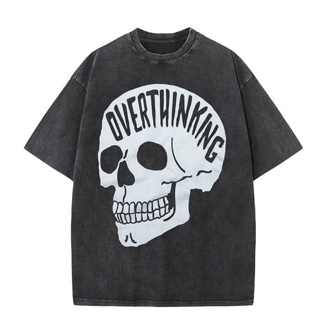 Overthinking Skull Print Washed T-shirt