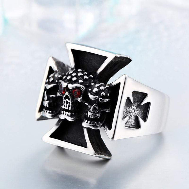 Appreciate the true detail of impressive craftsmanship with our Red Eye Skull Iron Cross Ring. Inspired by both Catholic and gothic design, it boasts a timeless silhouette. The Titanium Steel used in weighty and luxurious, feeling sturdy on the finger and demanding the attention of every admirer. It truly is an accessory that will become his firm favourite without a doubt.