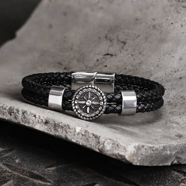 Rudder Stainless Steel Leather Marine Bracelet