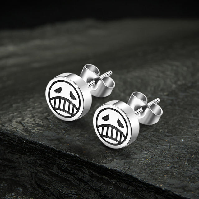Sadness and smiley faces are two extreme emotions that show people's ambivalence. People can have many emotions about one thing. Like Ace in the comics, when he died, the sad expression on the hat described his mood at the time. He felt pain, burning, hurt, guilt, and didn't want to die. Even so, he had no remorse for what had happened. He was happy to accept this outcome. These delicate stud earrings are made of stainless steel and are easy to maintain.