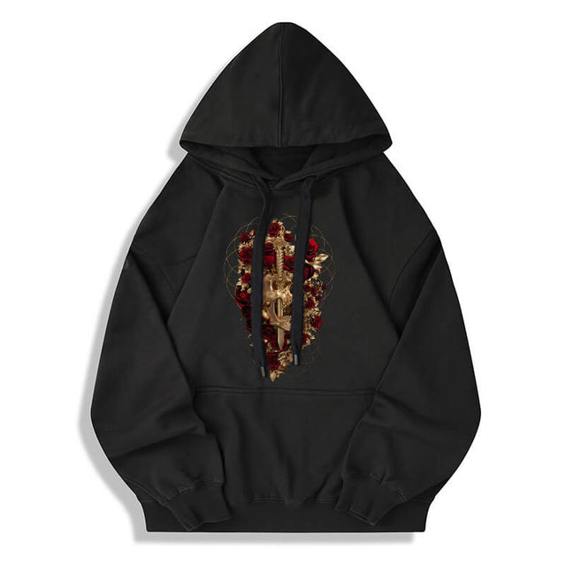 Skull Dagger Rose Cotton Pullover Hoodie - Black / S (Bust 108 cm) is backordered and will ship as soon as it is back in stock.