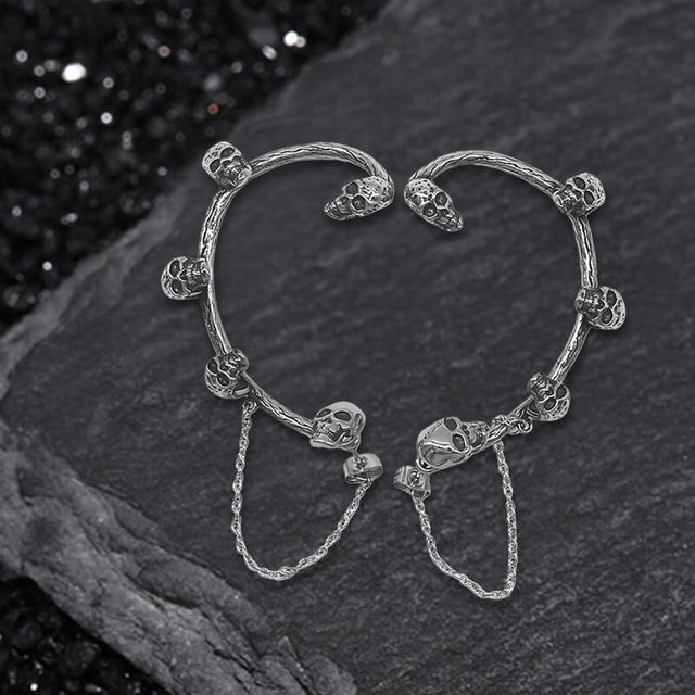 Skull Heads Stainless Steel Ear Cuffs Chain Earrings - Stainless Steel / A Pair is backordered and will ship as soon as it is back in stock.