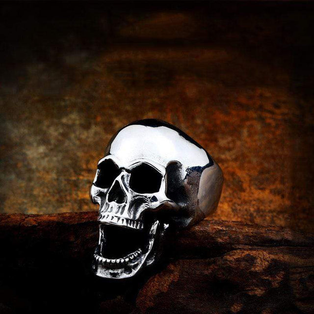 If you are looking for a quality Skull Ring, this ring could be the perfect compromise. Handcrafted by skilled silversmiths, it features the classic skeleton skull head design with exposed teeth and sinister eye sockets, and it comes for a solid weighty feel. A great gift idea for bikers, rockers, goths and musicians, it is an exceptional ring for men.